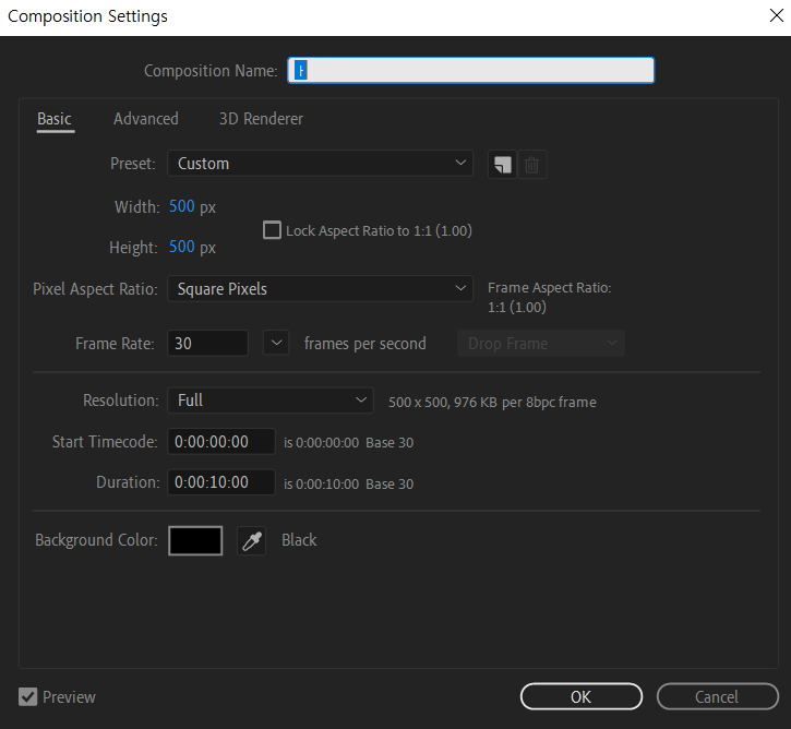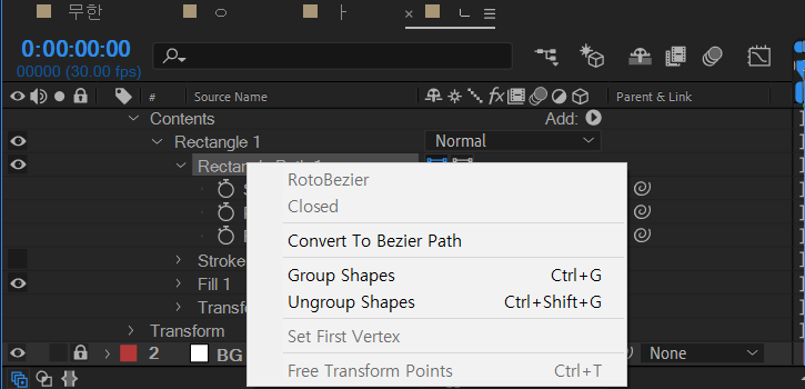 (저는 에프터이펙트 설정에서 도형을 만들 때