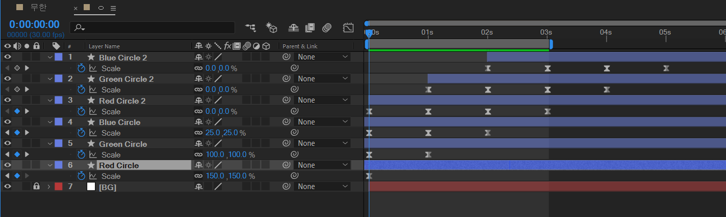 이미 0초에서 3초로 가는 키프레임을 찍어놨기 때문에