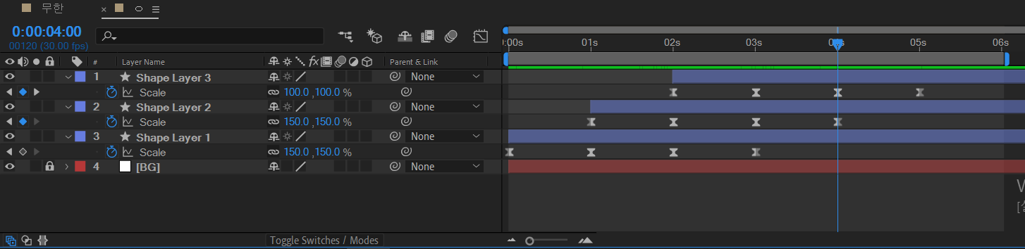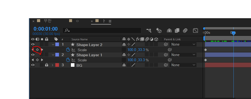 이번에는 Shape Layer2의 두 번째 Keyframe에 맞춰주세요!