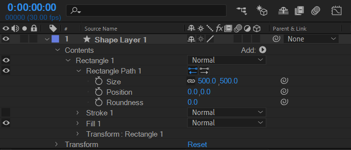 Shape Layer 1은 -90도 / Shape Layer 2는 0도로 찍어주세요!